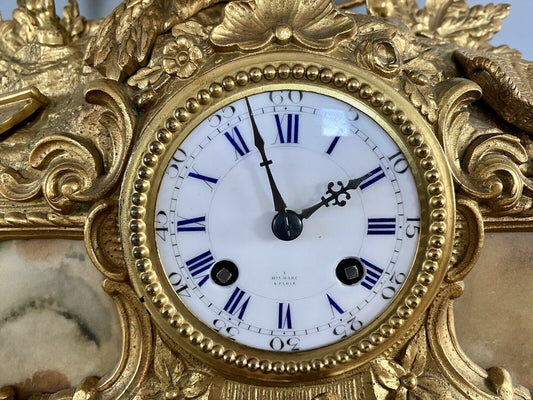 Henry Marc Paris, Gilt Bronze Mantel Clock With AD Mougin Movement