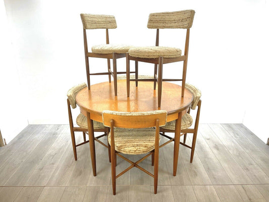 Gordon Russell, Mid Century Dining Table and 4 Chairs + 1 Carver