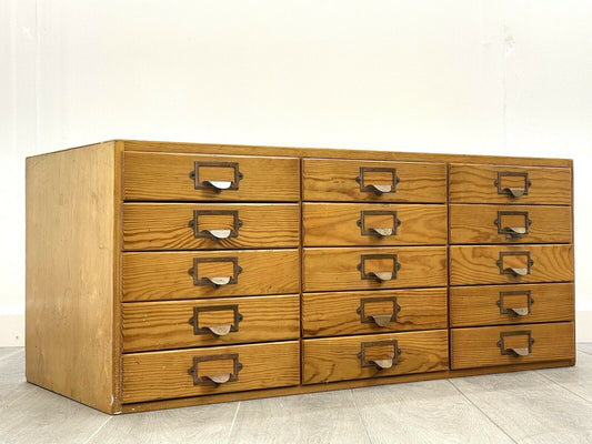 Industrial, Pine,15 Drawer Index Cabinet / Set of Drawers