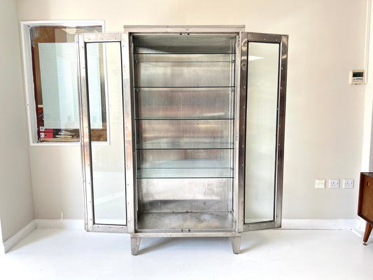 20th Century Stainless Steel & Glass Medical Cabinet