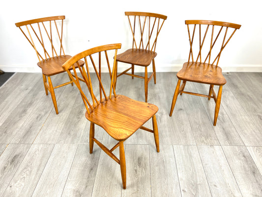 Set of 4, Ercol Style Candlestick Elm Dining Chairs
