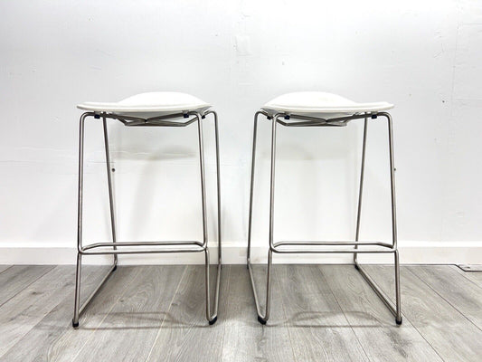 Pair of Modern White Leather Stools on a Stainless Steel Base
