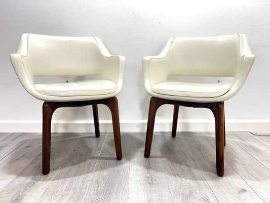 Pair of Danish De Luxe Kilta White Leather and Teak Dining Chairs