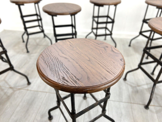 Industrial, Factory / Workshop Iron and Mahogany Bar Stool