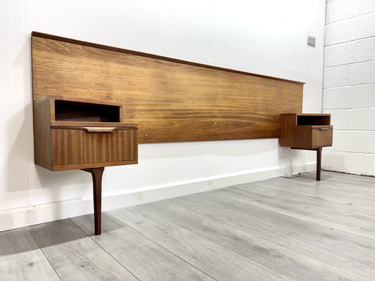 G Plan Fresco, Mid Century Teak and Leather Headboard with Drawers