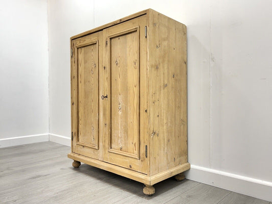 Stripped Antique Pine, Double Door Cupboard With Hidden Drawers