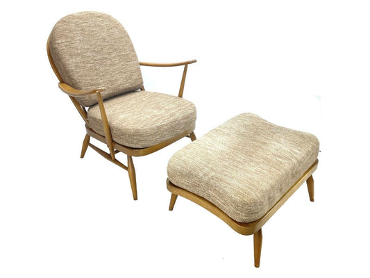 Ercol Armchair No. 203 and Matching Foot Stool No. 341 WITH Beige Cushions