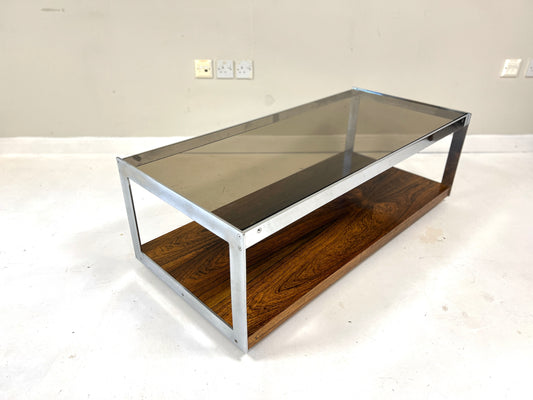 Merrow Associates Rosewood, Chrome & Glass Coffee Table