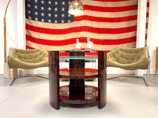 Vintage Maccassar Wood & Glass Occasional Table
