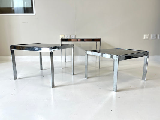 Merrow Associates, Smoked Glass & Chrome Nest of Tables