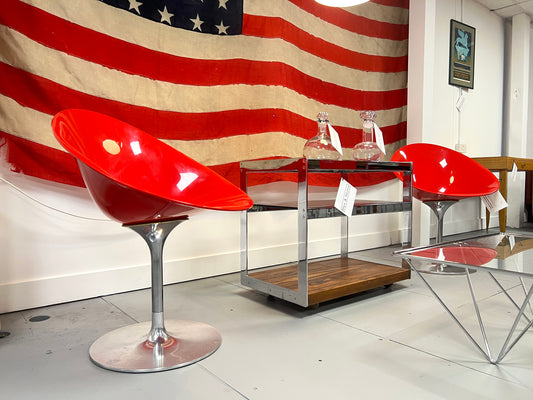 Kartell Eros, Pair of Red & Chrome Swivel Chairs