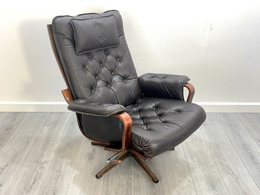 Westnofa Style, Brown Leather Recliner Swivel Chair