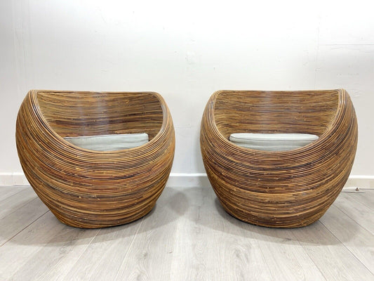 Pair of Vintage Habitat Sarang Reed Egg Chairs
