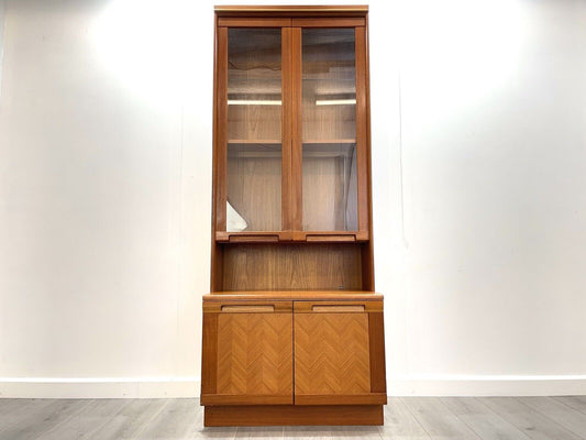 A Rare G Plan Herringbone, Teak and Glass Illuminated Bookcase / Display Cabinet