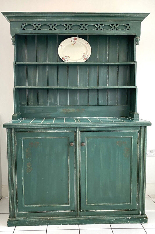 Vintage, Rustic Handmade Green Painted Dresser With Tiled Top