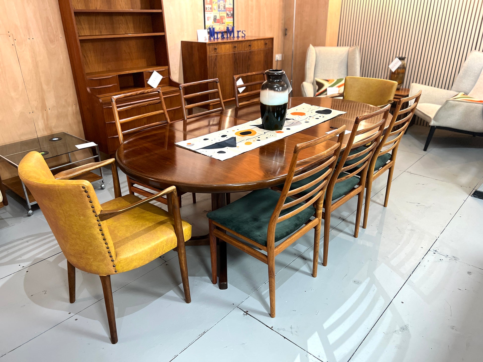 The upholstered seats show some marks, though the listed price includes free reupholstery in a fabric of your choice. If reupholstery is not required, £250 can be deducted from the final cost. Please allow up to 4 weeks for reupholstery and delivery if required.