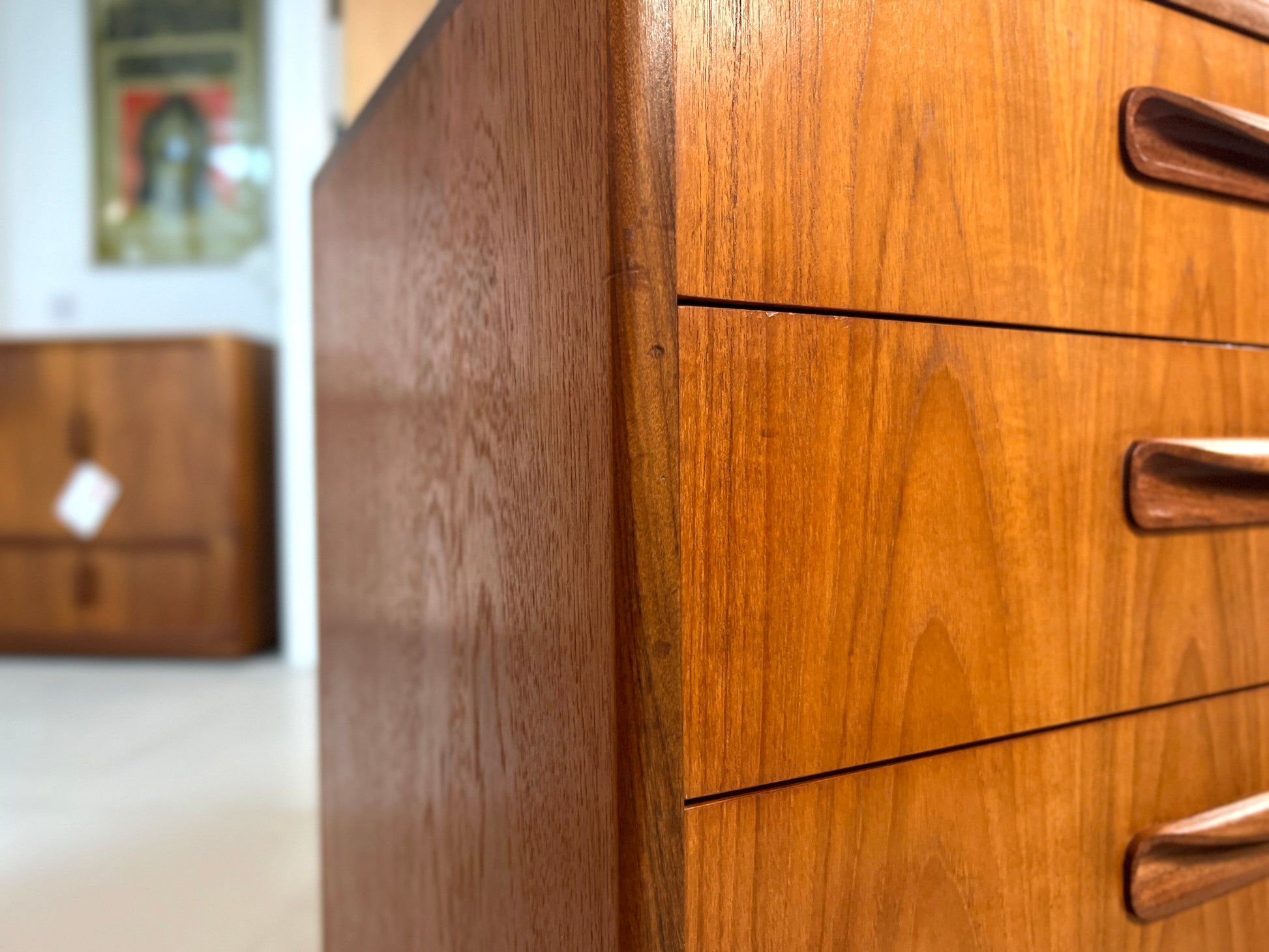 A teak chest of four drawers from the Fresco range by G Plan. A classic mid-20th century design, combining clean lines with practical storage, and retaining its original G Plan label to the top drawer.