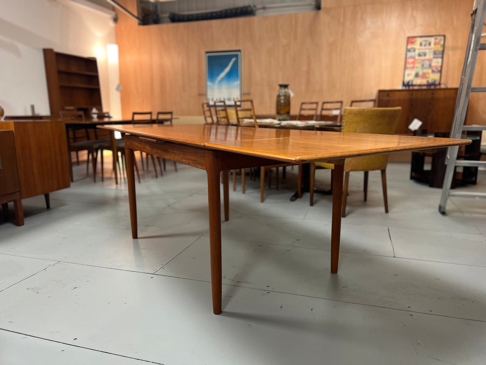 A vintage Danish extending dining table by the famous mid-20th Century designer Niels Otto Moller for A.B.J. of Denmark, labelled as so to the underside.